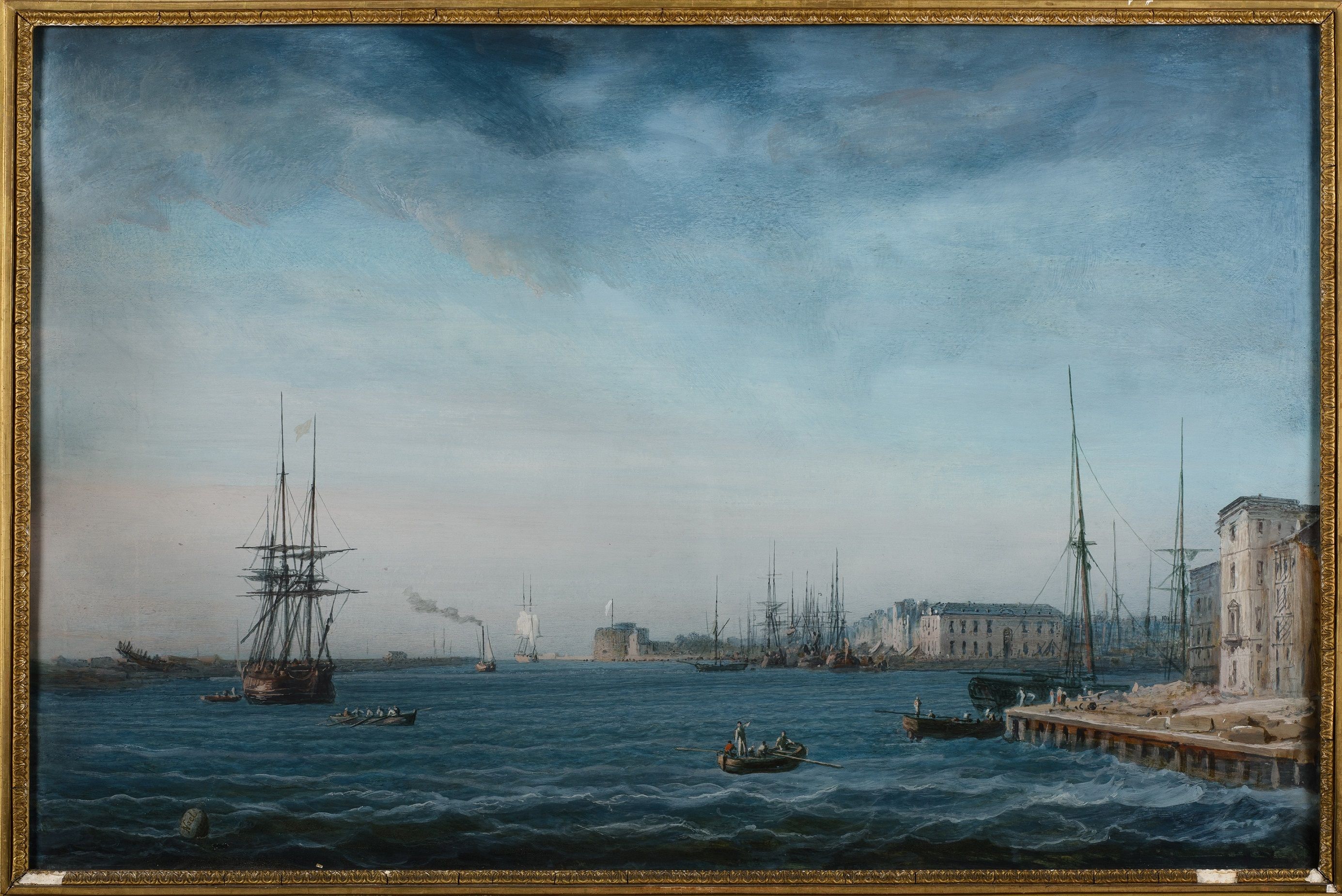 Cette « Entrée du port », peinte vers 1790, montre une ville en cours de transformation. La douane, où étaient pesées les marchandises et la Maison de l’armateur tout juste construite y figurent. Des amoncellements de matériaux sur les quais évoquent les mutations urbaines contemporaines.