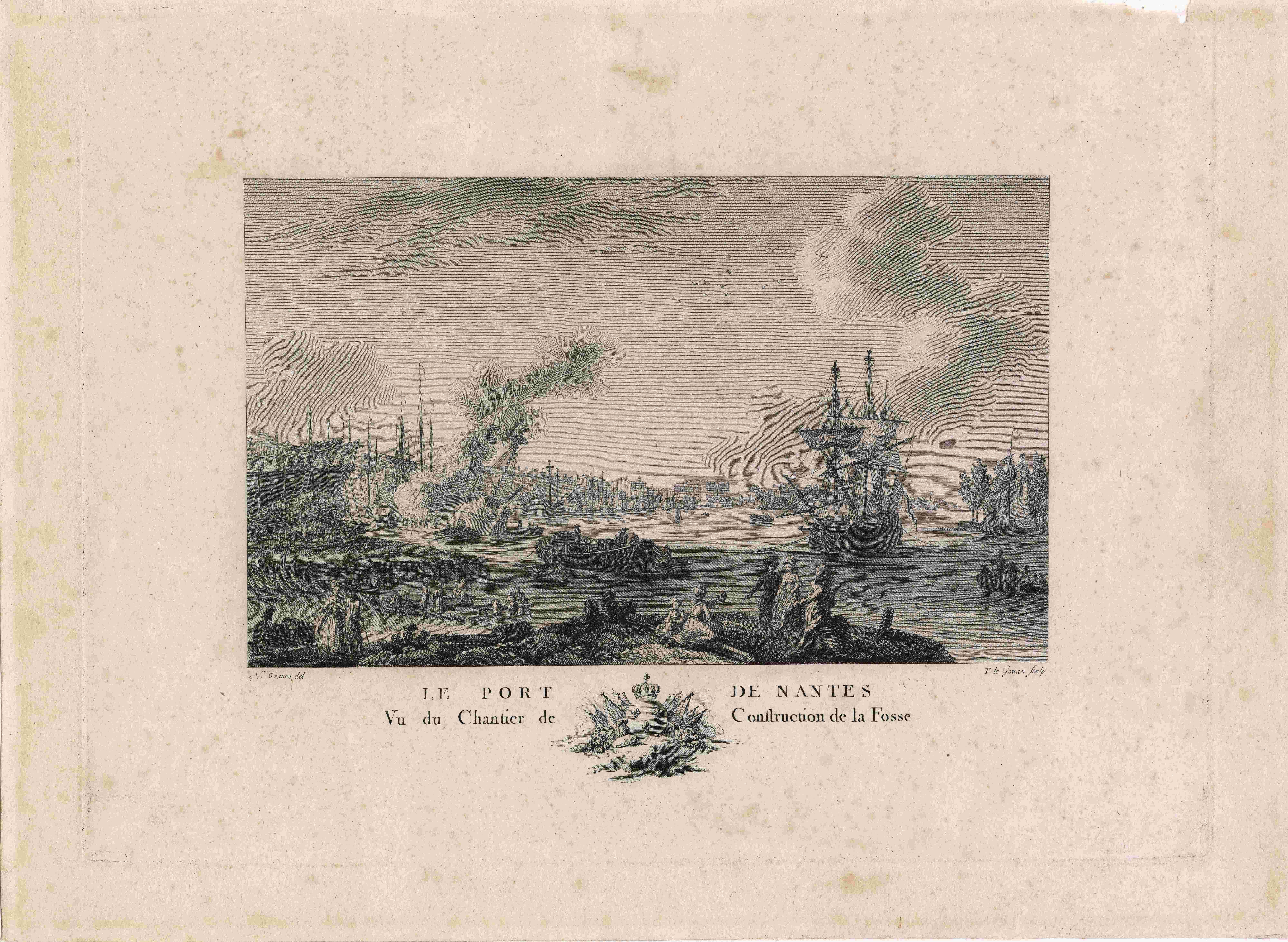En 1776, Nicolas Ozanne, dessinateur de la Marine, réalise pour Louis XVI une série de vues des ports français. Il livre de Nantes l'image d'un port en plein essor. Signe perceptible de cette richesse, les grands hôtels particuliers se développent le long du quai de la Fosse. Les travaux de construction et de préparation de la coque sont fidèlement rendus sur cette gravure, mais les grands trois-mâts qu'il représente dans le port sont une interprétation : les navires de fort tonnage ne peuvent alors remonter jusqu'au port.