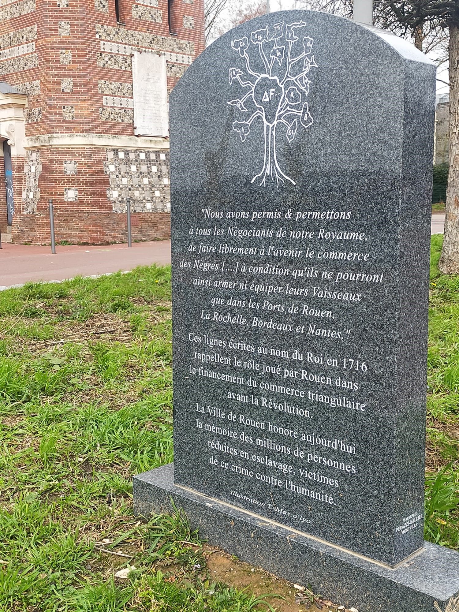 Stèle commémorative à la mémoire des victimes de l'esclavage à Rouen